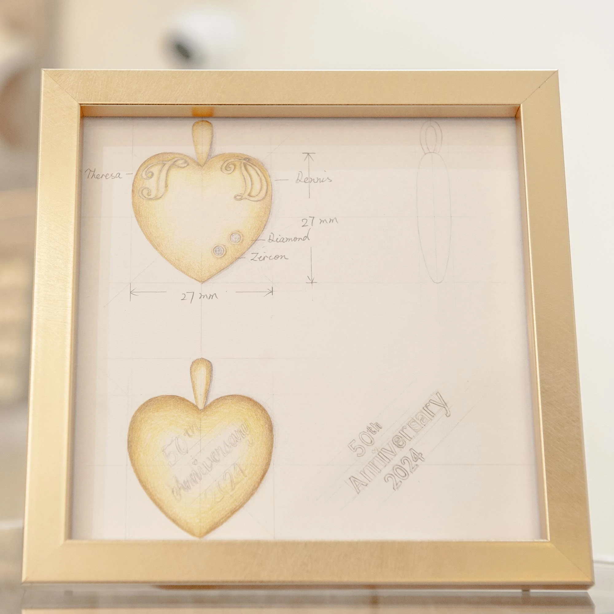In the heart of February, amidst the bustling atmosphere of our new location in Forest Hill Chase Shopping Centre, a familiar face approached our counter. This wasn’t just any customer; this was someone who had entrusted us with crafting a symbol of his love a decade ago. He had come back, looking to celebrate his and his wife’s 50th anniversary with another custom designed jewellery piece. The joy of seeing a customer return after so many years is indescribable, especially when it comes to commemorating such a significant milestone. His previous visit was for a 40th-anniversary pendant, and now, he sought to mark half a century of love with a new, heart-shaped pendant. It was an honour to embark on this creative journey with him once more.