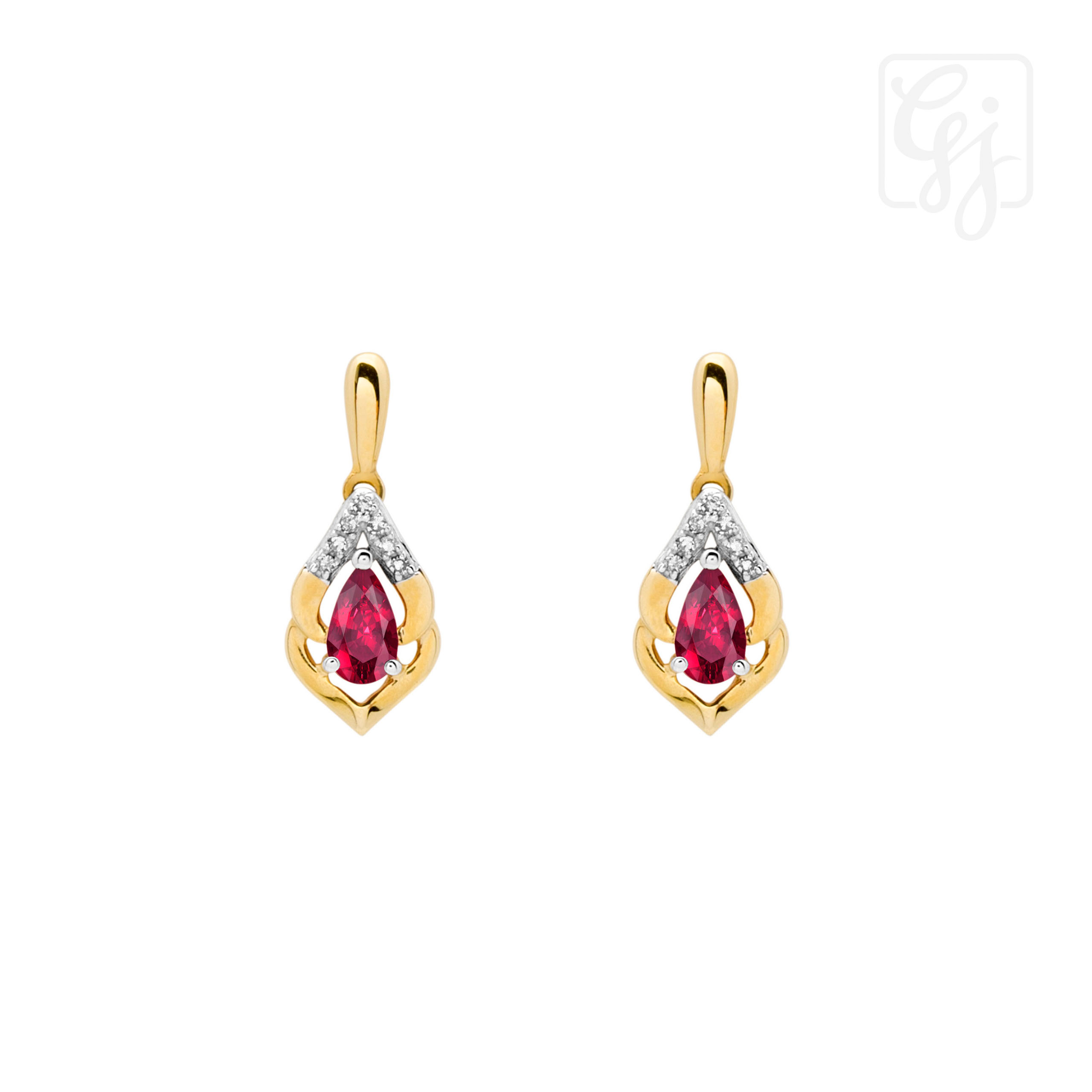 14K yellow gold diamond and Ruby Earrings. Length 17mm