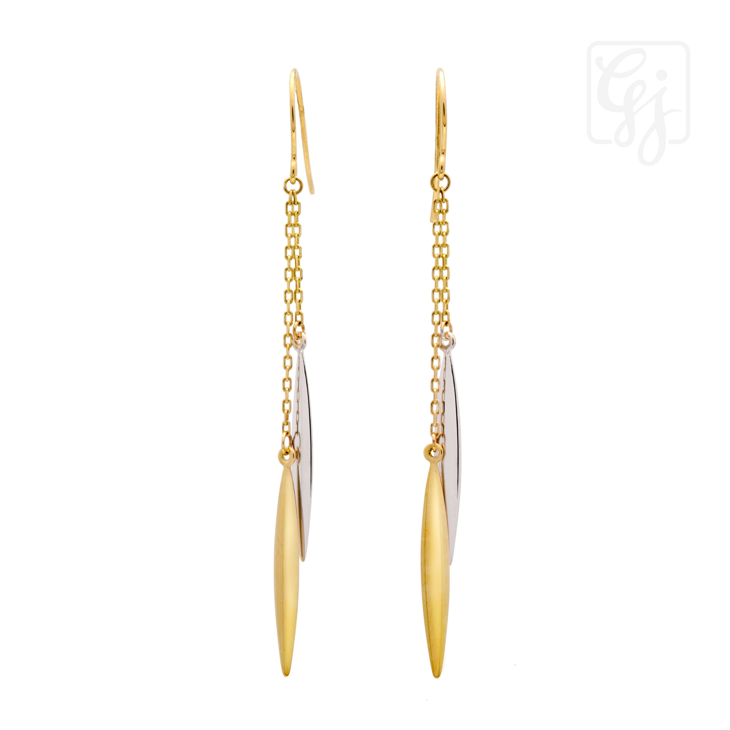 9k 2 tone(yellow and white) gold hook earrings.total earrings length is 58mm includes hook.