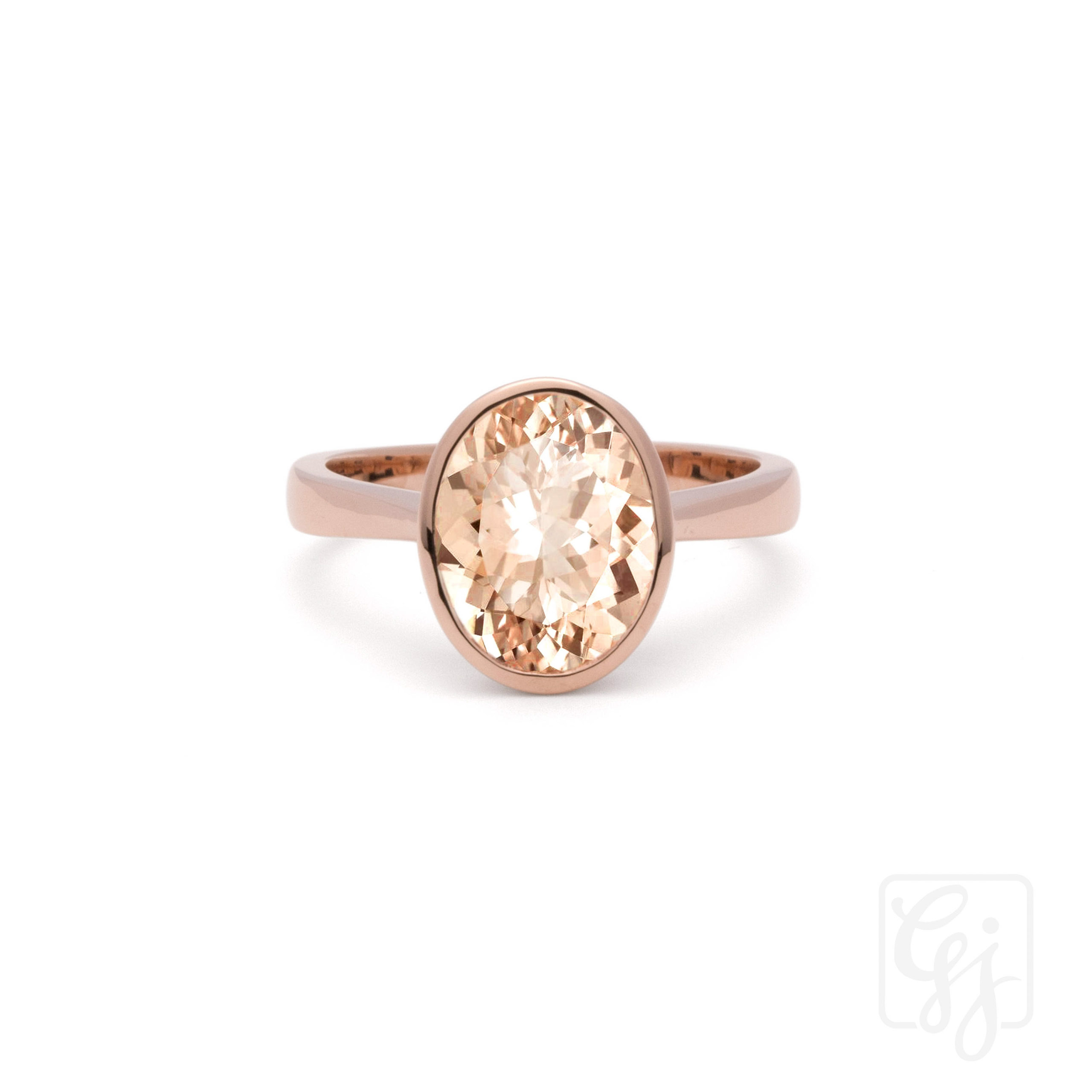 9k rose gold morganite ring with solid half round band, oval morganite measured 9 by 11 mm ring size N1/2