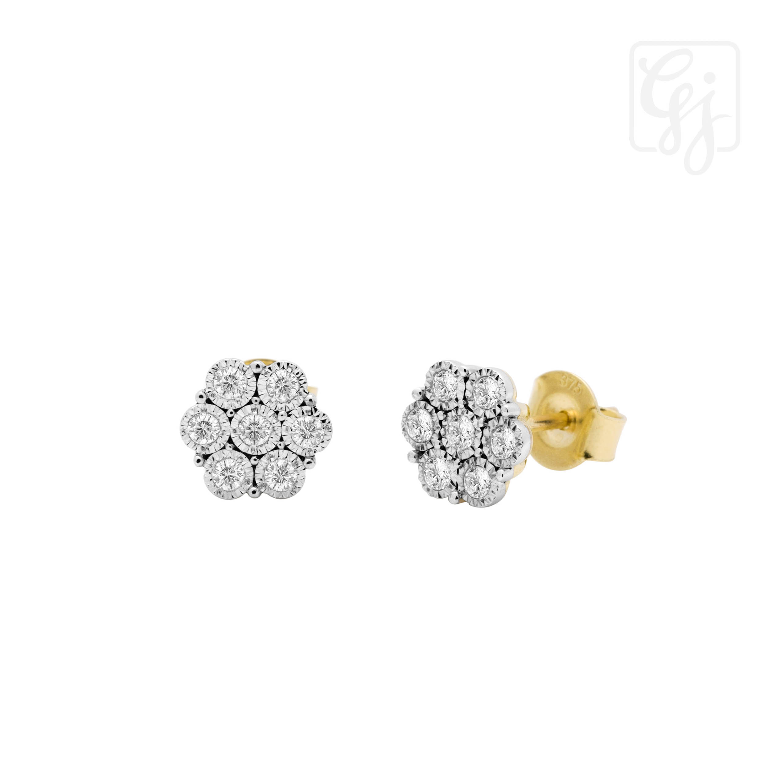 9K yellow gold cluster diamond studs TDW=0.25CT