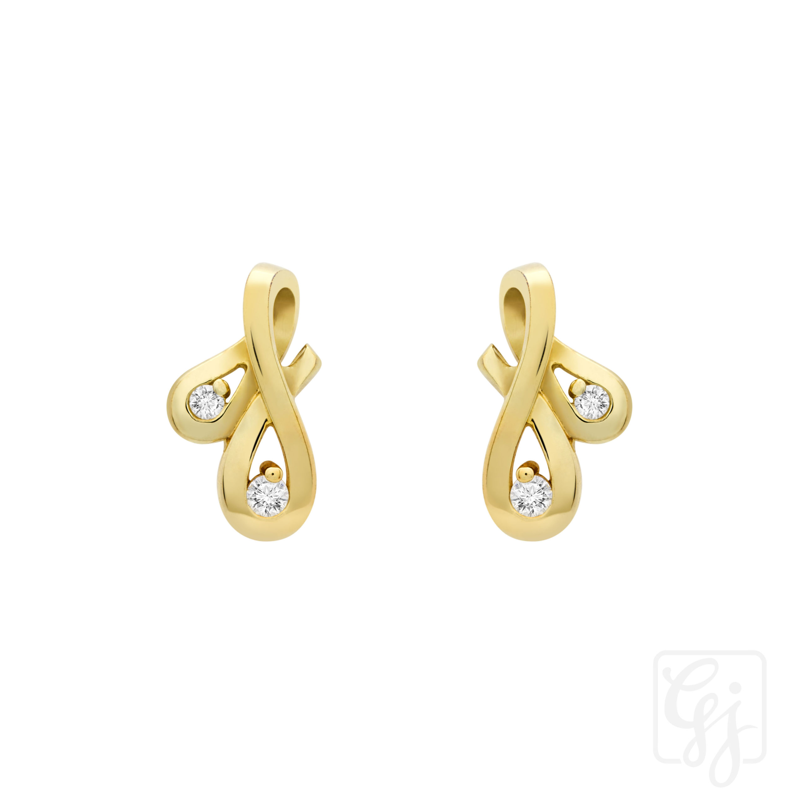 9K yellow gold Italian studs with C.Z. Earrings are 1.50cm long
