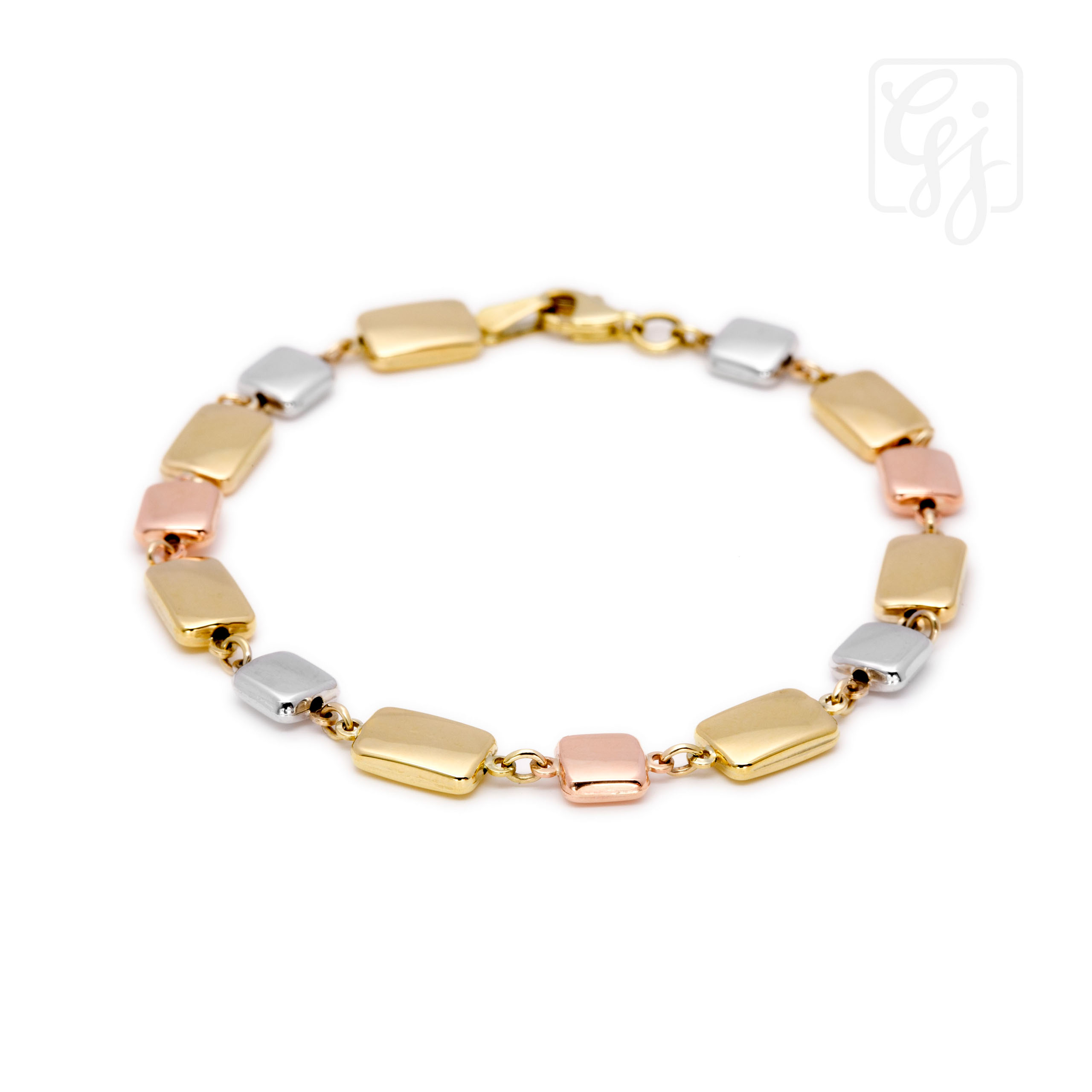 9K yellow gold, white gold and rose gold hollow bracelet total length 19cm