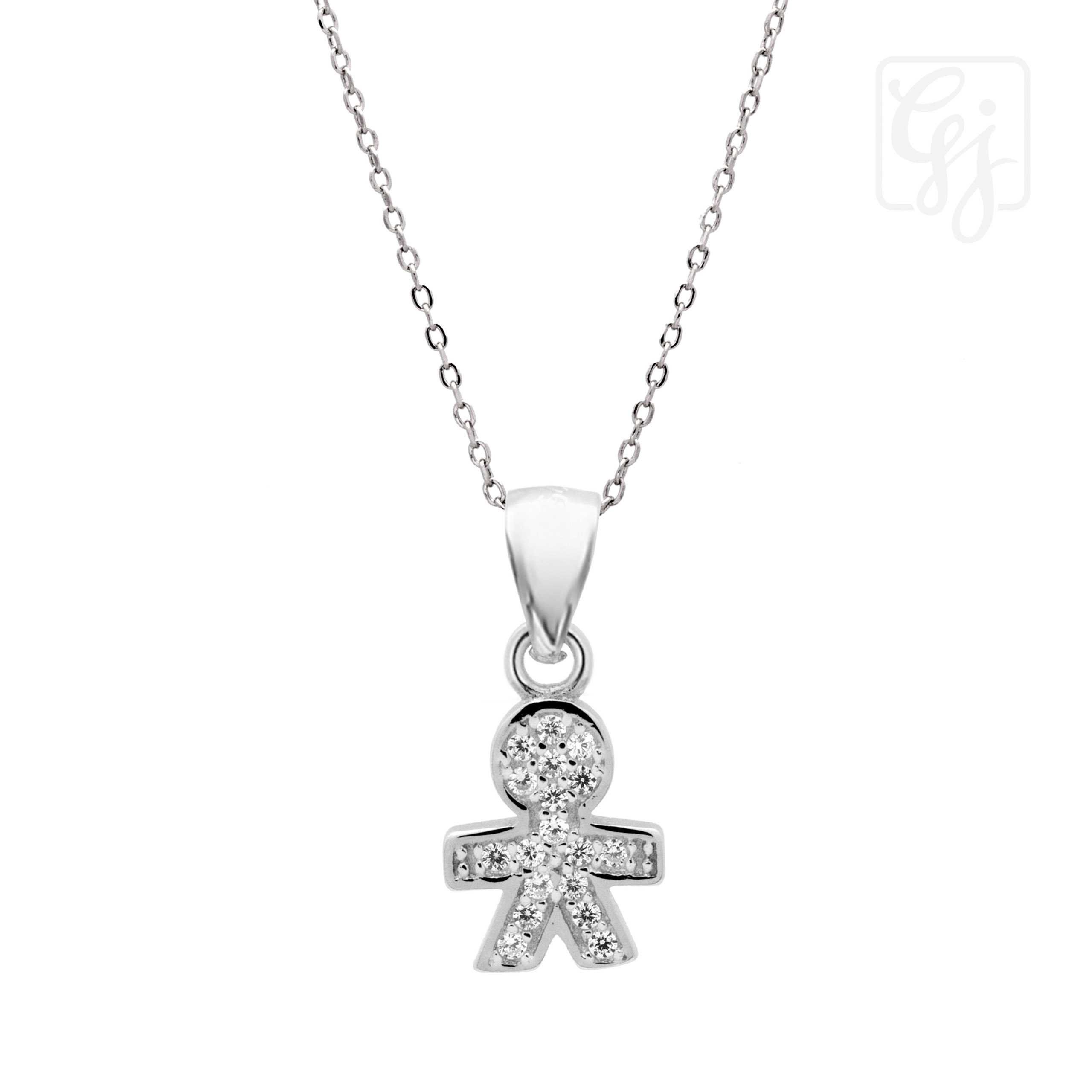 Sterling Silver Ginger Bread Man Pendant With CZ
