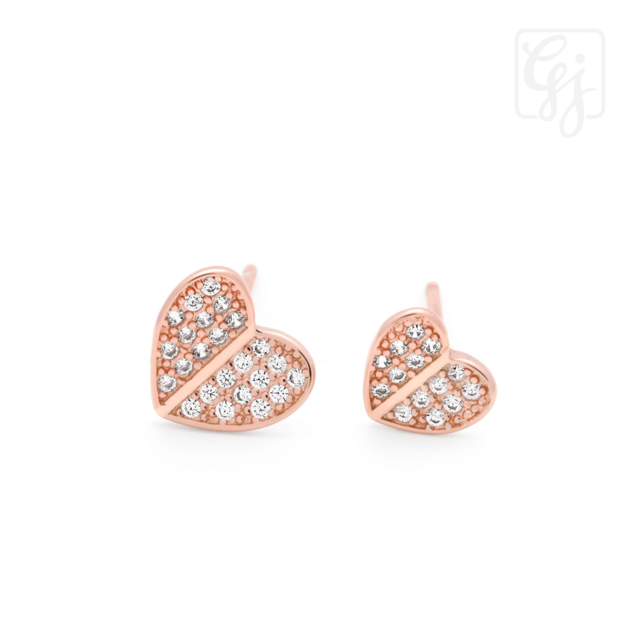 / Sterling Silver Rose Gold Plated Studs With CZ